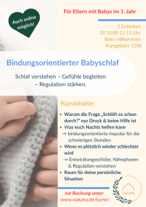 Bindungsorientierter Mini-Kurs für Eltern mit Babys im 1. Jahr – Schlaf verstehen, Gefühle begleiten und Regulation stärken.